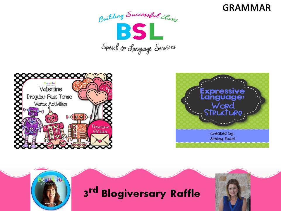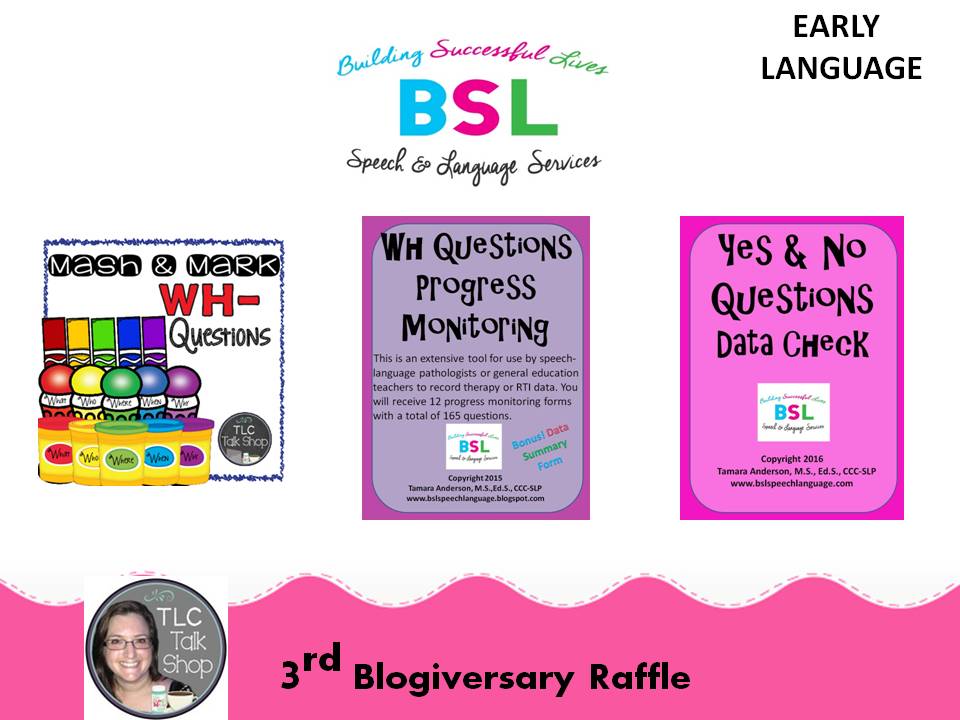 I am excited to tell you about my Building Successful Lives Blog Celebration Raffle. In honor of my 3rd Blogiversary, I will give away 3 products from my TPT store: Tamara Anderson plus an extra one in anticipation of a great year! You will also have a chance to enter to win 12 other products generously donated from other SLPs. Many of them are also bloggers and they all sell their awesome products via Teachers Pay Teachers. I am honored that they are joining in on this celebration! I created 6 bundles and 6 lucky winners will receive FREE products in celebration of my 3rd year.